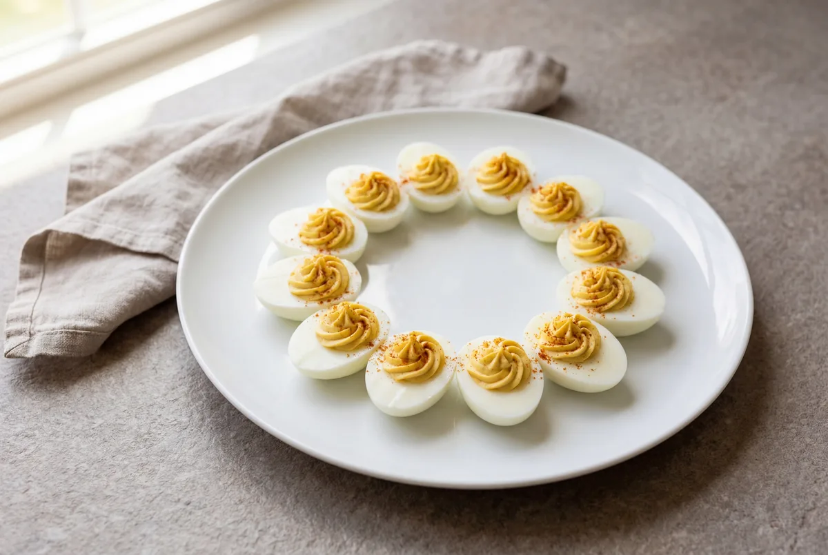 Silky egg yolk filling piped into tender whites with zero fiber, 9g protein per serving, and mild enough for active flares.