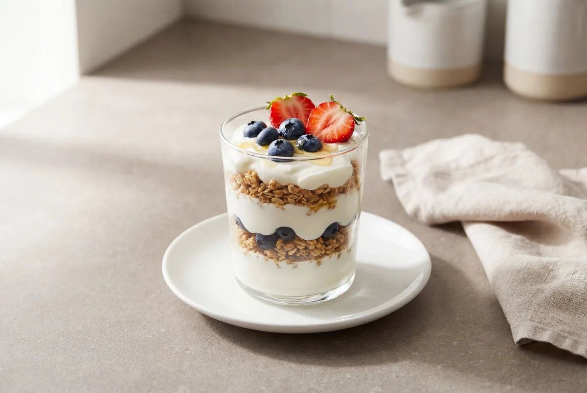 Best eaten immediately for optimal granola crunch. If making ahead, layer the yogurt and berries in an airtight container and refrigerate for up to 24 hours—add granola only when ready to eat to prevent sogginess.
