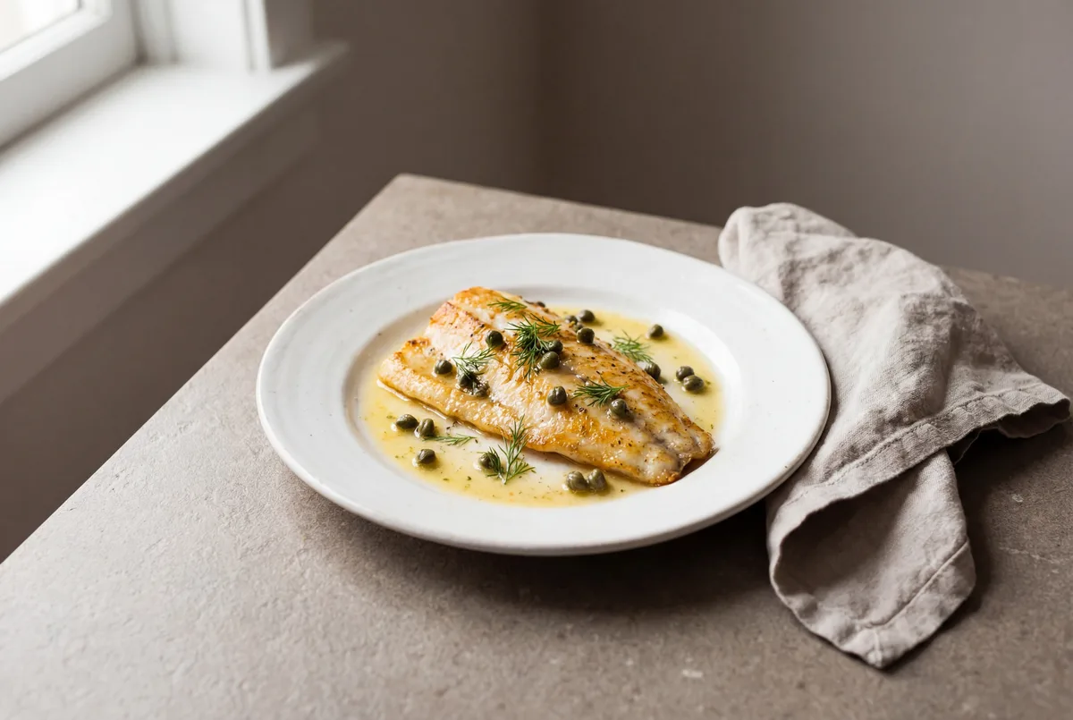 Pan-seared white fish with a delicate lemon butter sauce over white rice. At just 1g of fiber per serving, this is one of the gentlest complete dinners for flare recovery—lean protein, refined carbs, and anti-inflammatory omega-3s in 25 minutes.