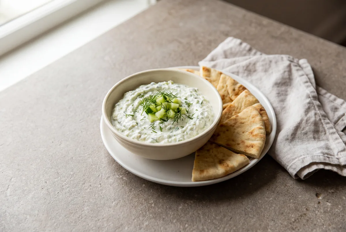 Creamy Greek yogurt dip with grated cucumber and fresh dill. Cooling and tangy, this low-FODMAP version uses garlic-infused oil for authentic flavor without the triggers.